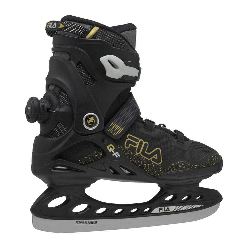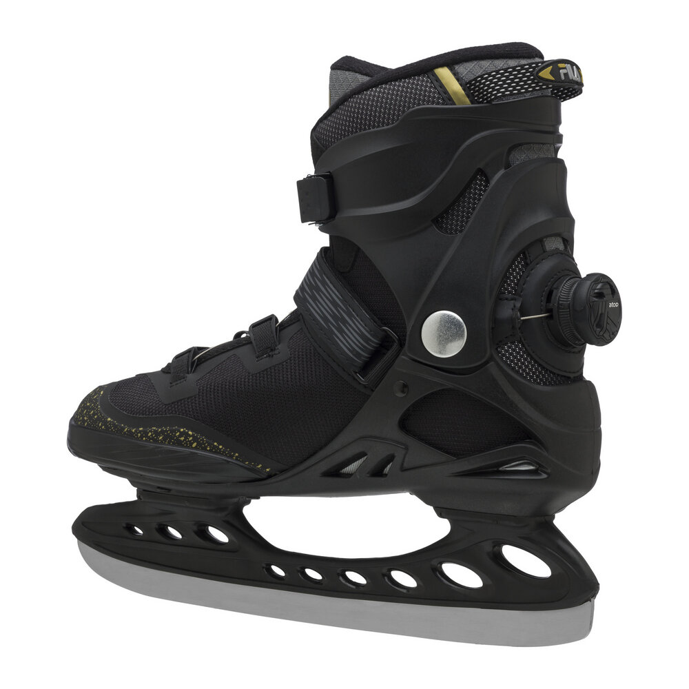 Versatility and performance. Primo Ice QF's composite construction makes it a lightweight yet robust skate with excellent lateral support and forward flex control. The anatomical padding follows the ergonomics of the foot and increases comfort during extended use and long training sessions. Primo Ice QF closes thanks to the combined action of the micro-metric lever on the ankle, the Velcro strap on the instep and the ATOP roller mechanism positioned on the back of the cuff. A revolutionary, fast and intuitive method that allows progressive and uniform closure along the entire length of the boot. Unlike traditional lacing, it never loses tension during skating sessions. To remove the skate, simply turn the wheel anti-clockwise and gently pull on the tongue of the shoe. The pre-sharpened stainless steel blade with hockey-oriented design is mounted on a robust and lightweight composite blade holder for maximum manoeuvrability and control. Primo Ice QF: performance and practicality.