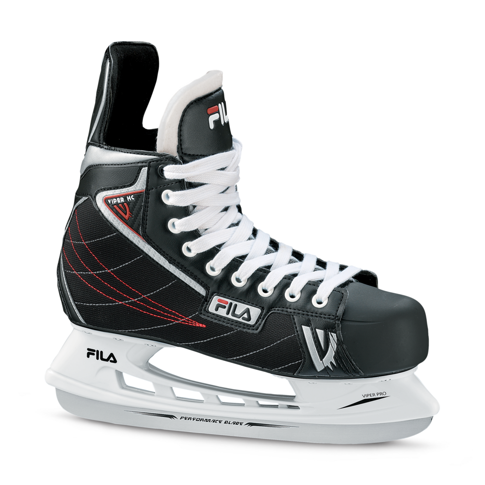 Performance and safety. Viper HC is a reliable, precise and high-performance ice hockey skate. The boot is made of sturdy synthetic leather, is lined with padded velvet for greater thermal insulation and has a raised felt tongue to optimize the fit and protect against impact during play. The anatomical padding of the internal structure envelops the foot and allows for better transmission of force to the blade while lacing is quick and easy even with gloves on. The reinforced toe cap and rear spoiler in synthetic material increase protection in the most intense playing situations. The blade holder is made of ultralight material and is fitted with a pre-sharpened blade specific for hockey in brushed stainless steel. Precise movements and sharp changes of direction are not afraid of the Viper HC!