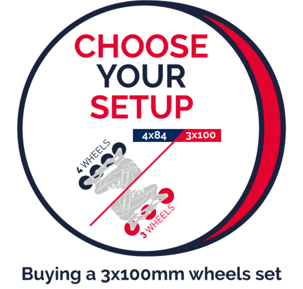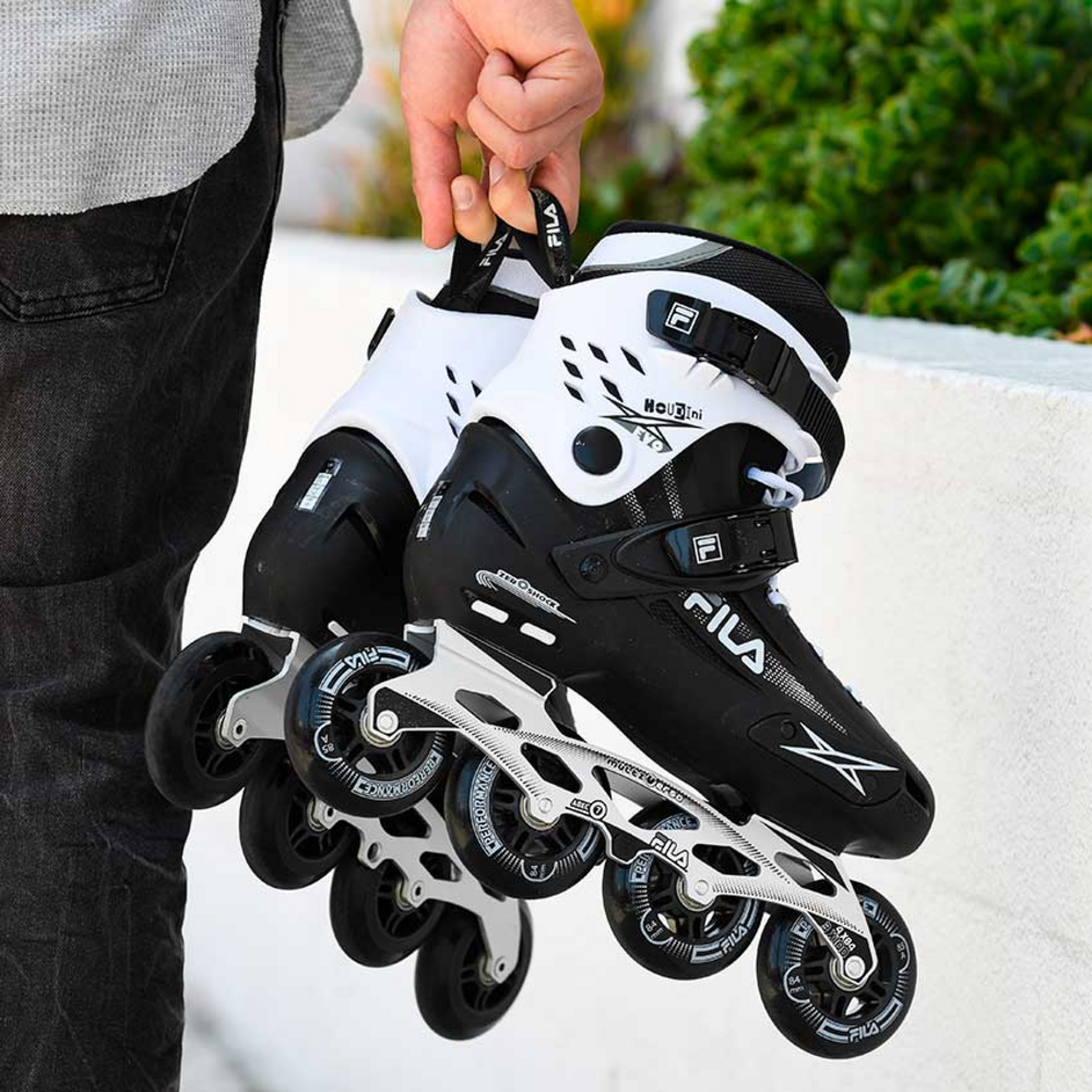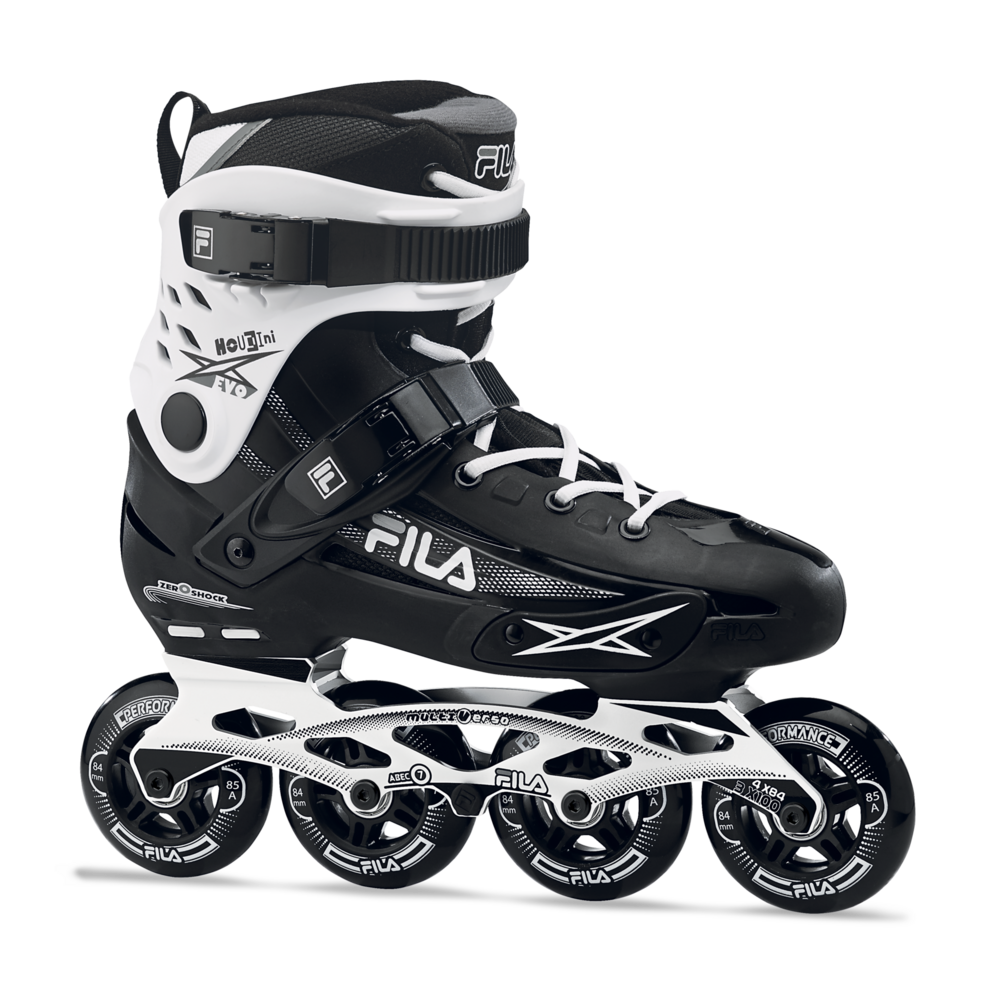 Precision, comfort and lightness. Houdini Evo is a versatile, lightweight inline skate engineered to progress with you as your technique and skill progresses. The high-performance sports fit has been created to support and protect your foot throughout your training session thanks to the pre-shaped anatomical padding that stabilizes the ankle, maintaining it in the correct position and the Zero-Shock insert located on the heel area that provides excellent cushioning and impact absorption. A high composite shell and cuff provide a lightweight sturdy structure, while the 6000 series aluminium frame is fitted with 4 x 84mm wheels and ABEC 7 bearings but lets you choose between two different setups: you can also mount 3 x 90/100mm wheels which deliver increased speed without compromising manoeuvrability. The closure system features laces, lever on the cuff and micro-adjustable lever on the instep to deliver a super safe and super-personalised fit. 3 or 4 wheels? You get to choose...and then go skating!