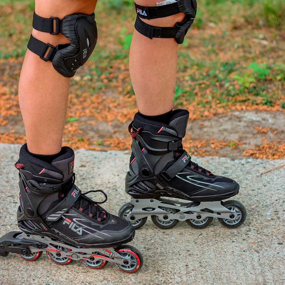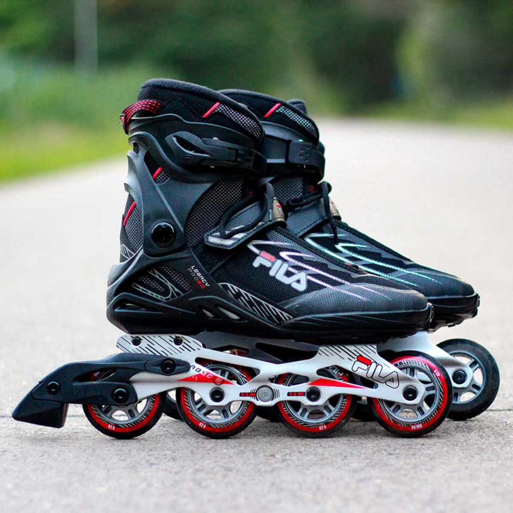 It follows your progress. Lightweight, functional skates with a precise and comfortable glide. Perfect for light fitness skating and urban rolling. The synthetic and mesh liner employs Fila Skates' AirFlow™ technology to ensure maximum breathability. The high cuff provides good ankle support and maintains correct foot positioning. Localized padding follows foot contours for a super-snug fit, while the closure system is precise and personalizable thanks to the laces, Velcro strap on the instep and lever on the cuff. The 6000 series aluminium frame is equipped with 4 x 80mm wheels and ABEC5 bearings – the ideal setup for beginners. The frame, however, has be designed to provide the versatility you need to develop as your skating and balance improve. The frame length is long enough to be fitted with 4 x 84mm wheels as soon as you become as your skills progress, or 3 x 90mm wheels for greater speed without compromising manoeuvrability. Thus you can upgrade your setup as you progress and your technique improves. Choose your perfect setup and enjoy safe skating with the Legacy Pro 80!