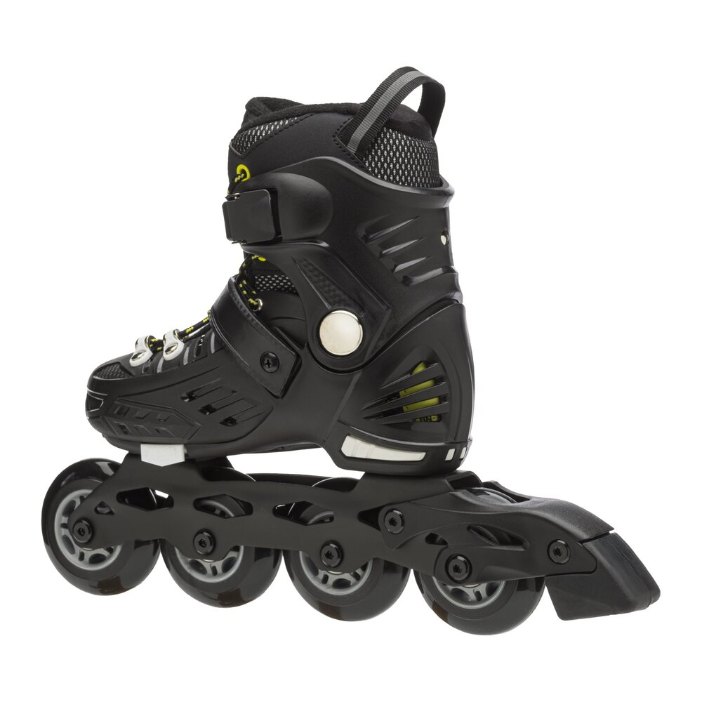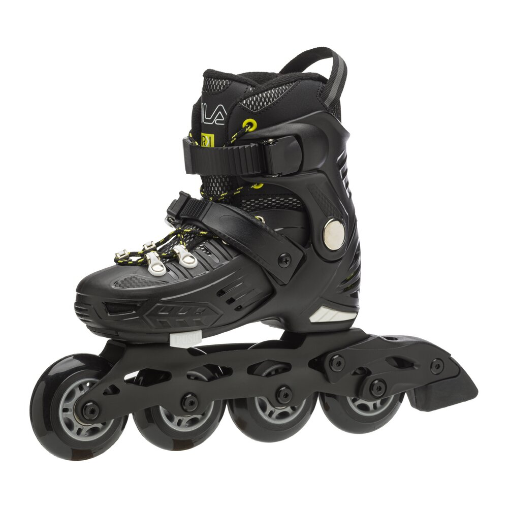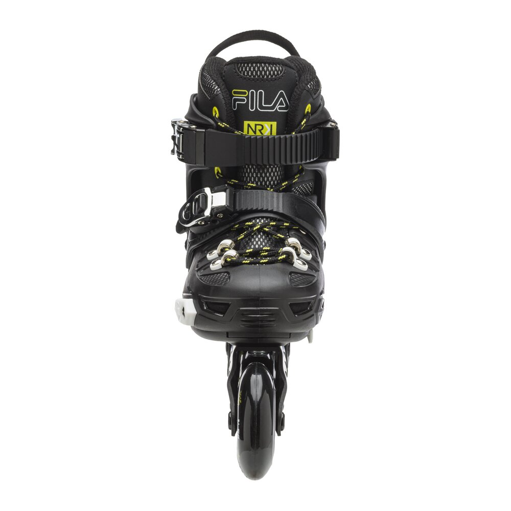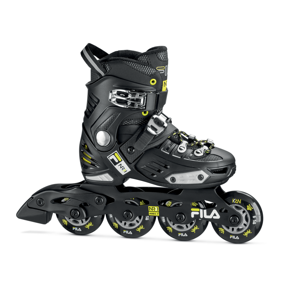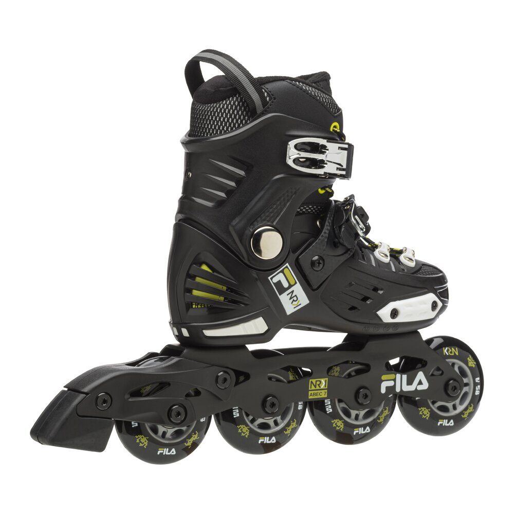 Skate towards success! NRK JR is a fun and easy to ride inline skate dedicated to all young enthusiasts who are just learning to skate or who want to experiment with tricks, jumps and breathtaking turns. The sporty fit, the composite shell and the wraparound cuff create a durable and enveloping structure thanks to the anatomical preformed padding that perfectly stabilizes the foot and ankle and the Shock Absorber technology that supports the heel and effectively absorbs impact with the ground. The closure is secure and robust thanks to the laces and two micro-metric levers positioned on the instep and ankle. NRK junior grows with the feet of the youngest thanks to a simple click: the Step Jem™ mechanism by Fila Skates allows the skate size to be adjusted quickly and easily, so that it will always fit perfectly. The extruded aluminium frame is fitted with 4 x 76 mm wheels and ABEC 7 bearings for a smooth skate. Skate towards your dream and have fun with NRK JR!