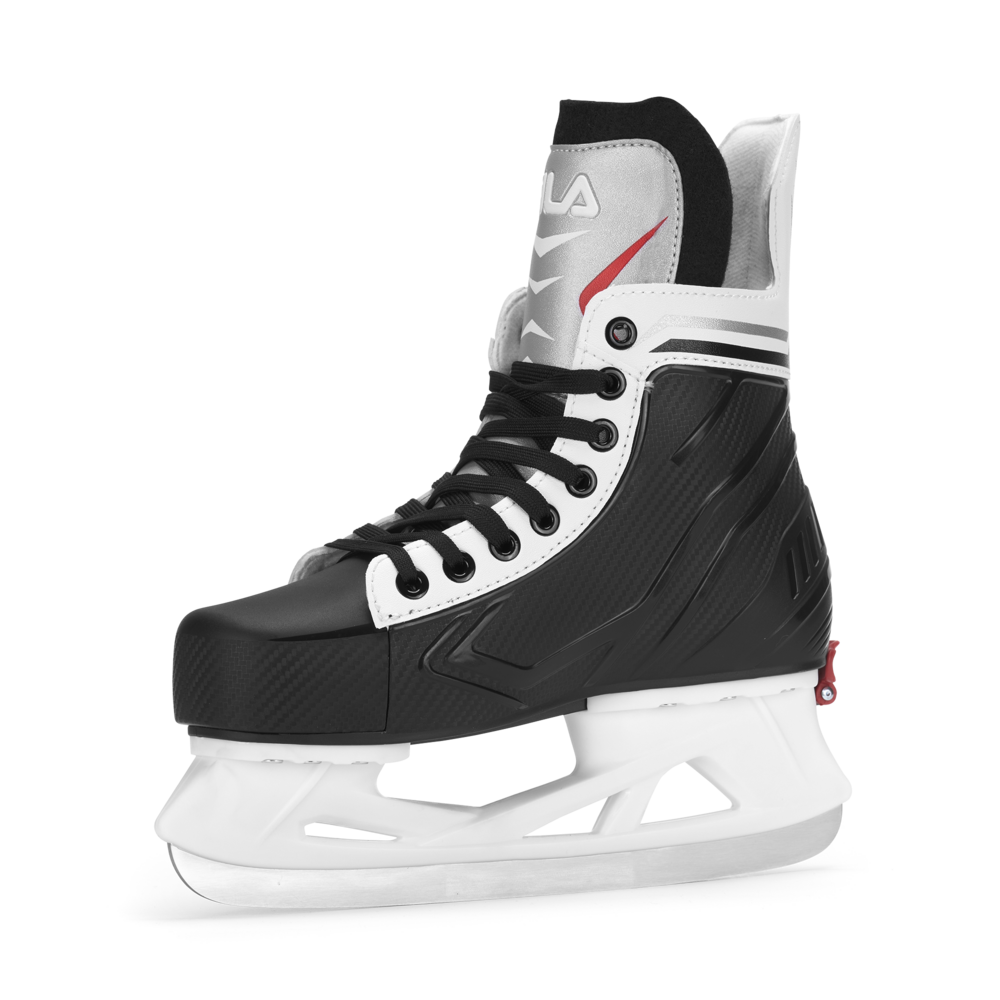 Young ice hockey players grow up. Viper HC Junior is a reliable, precise, solid and easy-to-use ice hockey skate, perfect for the kids approaching the sport. The boot is made of sturdy composite shell, is lined with padded velvet and has a raised felt tongue to optimize the fit. The padding of the anatomical structure envelops the foot and allows for better transmission of force to the blade while lacing is quick and easy even with gloves on. The reinforced toe cap and rear spoiler is synthetic material increase protection in the most intense playing situations. The blade holder is made of ultralight material and is fitted with a pre-sharpened blade specific for hockey in brushed stainless steel. Viper HC Junior grows with the foot of the smallest skaters thanks to an internal millimetric size adjustment mechanism that allows even the slightest adjustment of the skates even while it is being worn. The fun is assured with the Viper HC Junior!